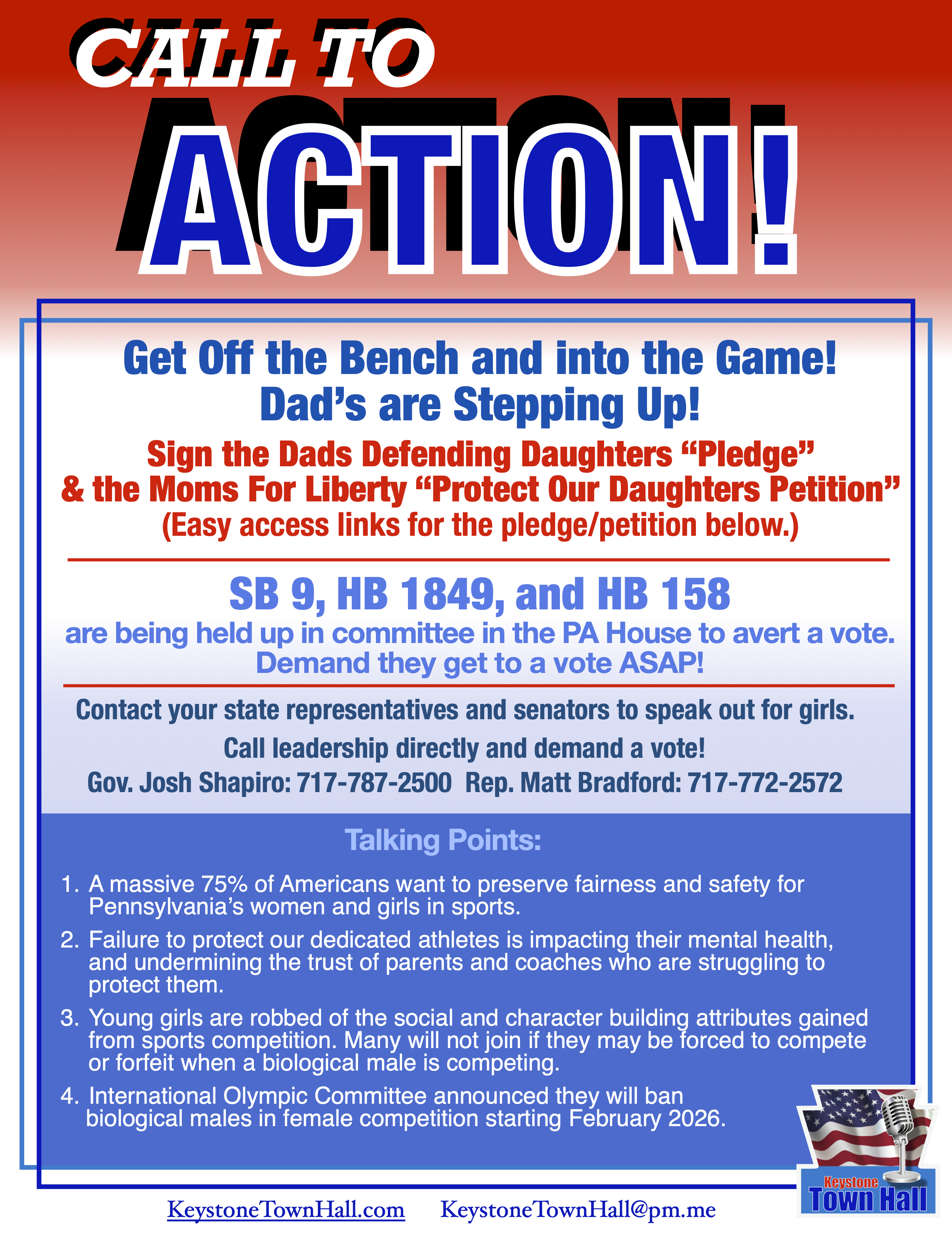 The Conservative Voice and Keystone Town Hall are issuing a Call to Action to Stop the Stall for SB9, HB1849, and HB158.