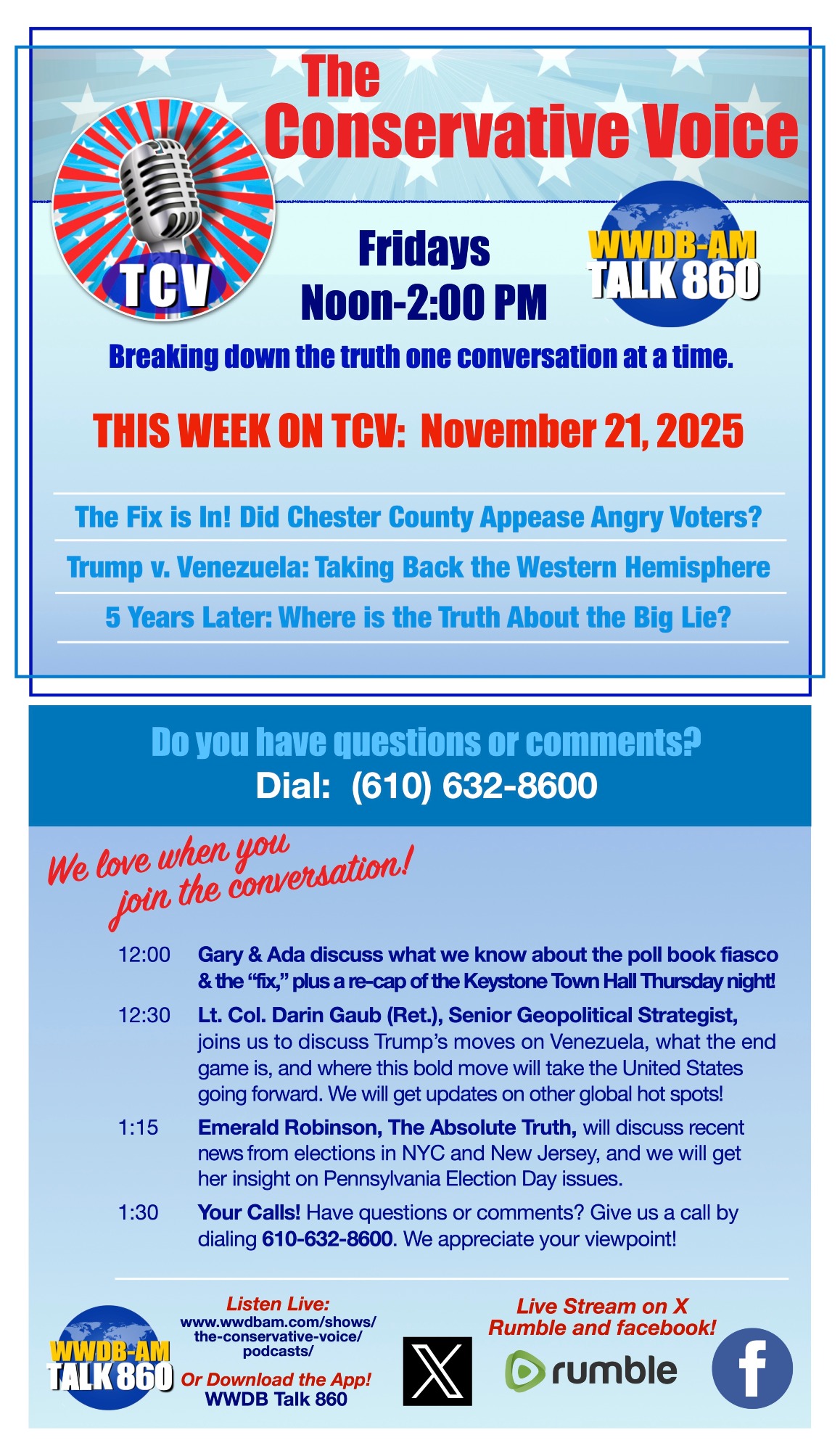 EMERALD ROBINSON THIS FRIDAY! To listen live, click the WWDB link on the right, and look for the LISTEN LIVE button at the top. Click it to listen live! Live streaming on X! https://x.com/TCVoiceWWDB Rumble: https://rumble.com/c/c-6755485 Facebook: https://www.facebook.com/thedeanmalikshow/ Find TCV on your favorite apps: https://keystonetownhall.com/TCV-page.html
